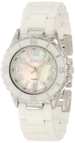Epitomizing contemporary elegance, the AK Anne Klein Women's Swarovski Crystal-Accented Silver-Toned Ceramic Watch features the unique combination of a silver-toned metal case and a white ceramic bracelet. The white ceramic bracelet closes with a deployment clasp and provides a complementing color for the watch's white mother-of-pearl dial. The dial boasts silver-toned Arabic and Swarovski crystal hour markers and silver-toned hands. For added elegance, the watch's silver-toned bezel is accented with dozens of additional Swarovski crystals. Other features include a genuine mineral crystal, reliable Japanese quartz movement, and water resistance to 99 feet (30 meters).